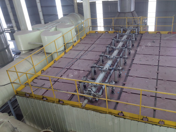 噴霧干燥塔除塵器采用高溫針剌氈濾料作為過濾材料,透氣性能強,除塵效率高。采用反吹除塵法,不僅能凈化一般的含塵硫氣體,還能處理入口濃度達1300g/Nm3的含塵氣體。煙氣中所含的水蒸氣由于其溫度較高,在100℃左右,初呈氣態;從噴霧塔出來后,溫度有所降低,冷凝成水滴附在煙氣中的塵粒上,呈現霧狀;進入氣箱脈沖袋除塵器時塵粒即被捕集下來。
