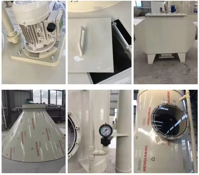 1.噴淋塔體的材料為不銹鋼,鋼板,聚丙烯和玻璃纖維,整體為無(wú)分段連接法蘭的纏繞圓柱圓柱體。具體結(jié)構(gòu)由壓力室、儲(chǔ)液罐、填料、噴淋裝置、消泡裝置等組成。