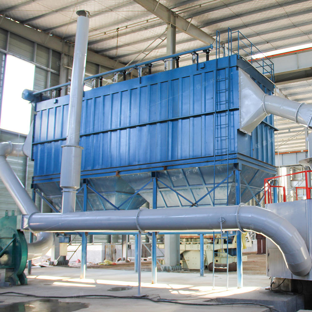 白灰窯燒制的原料經(jīng)破碎工序,通過給料機(jī)連續(xù)均勻地輸送至雷蒙磨、超細(xì)立磨主機(jī)中進(jìn)行研磨處理。在風(fēng)機(jī)氣流的作用下,被粉磨的細(xì)粉通過高效分級(jí)機(jī)進(jìn)行分級(jí)篩選,隨后送入出風(fēng)管道進(jìn)入布袋除塵器收集。布袋除塵器在磨機(jī)生產(chǎn)系統(tǒng)中起到了“主角”的作用,不僅兼顧除塵達(dá)標(biāo)排放,又直接參與生產(chǎn),除塵器收集的粉塵即成品,所以磨機(jī)生產(chǎn)系統(tǒng)中布袋除塵器質(zhì)量十分關(guān)鍵。